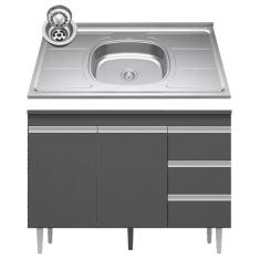 Balcão Gabinete Com Pia Inox 120cm Andréia 2 Portas Cinza Ajl Móveis