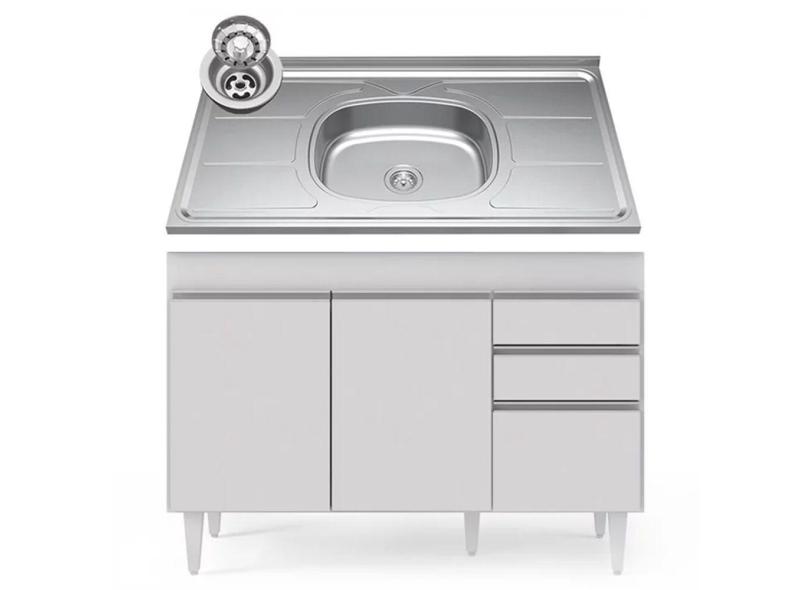 Balcão Gabinete Com Pia Inox 120cm Michigan Branco - Lumil