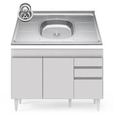 O menor preço encontrado no Brasil para Balcão Gabinete Com Pia Inox 120cm Michigan Branco - Lumil atualmente é R$ 719,14.