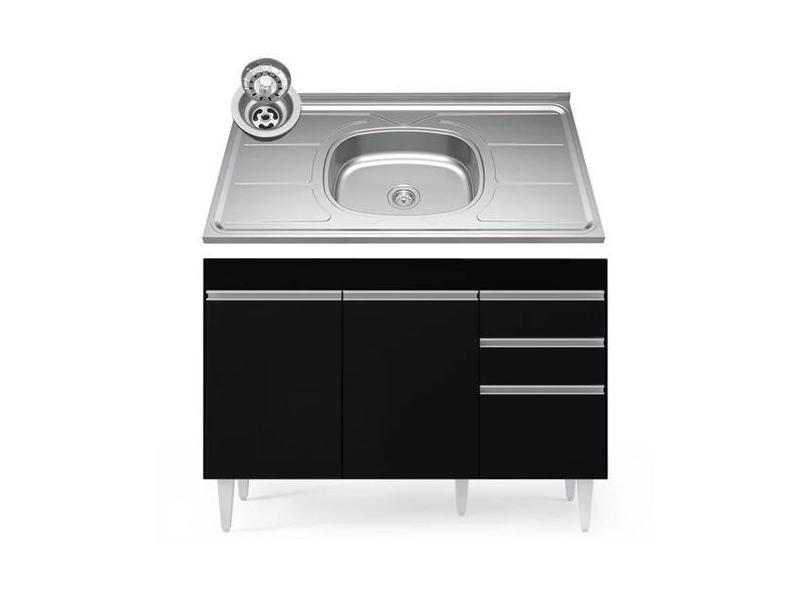 O menor preço encontrado no Brasil para Balcão Gabinete Com Pia Inox 120cm Michigan Preto - Lumil - Lumil Móve atualmente é R$ 812,47.