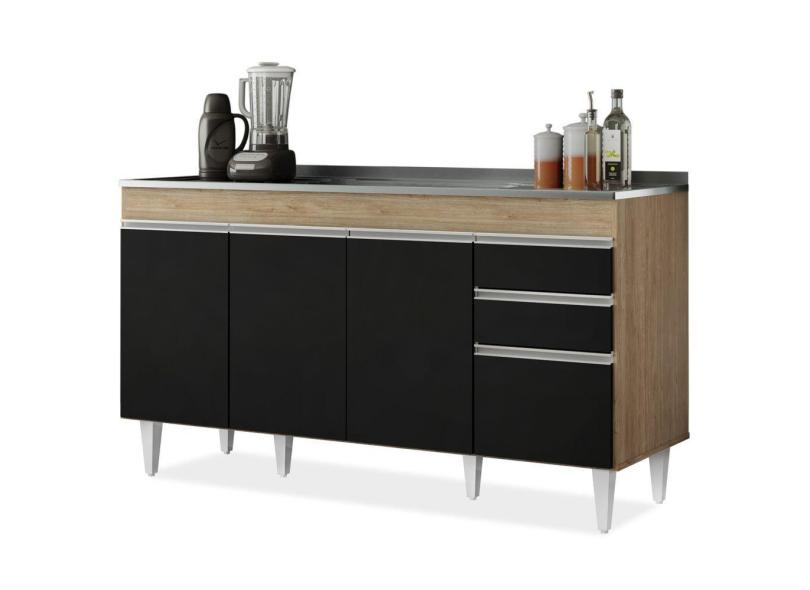 Balcão Gabinete Com Pia Inox 150cm Marrocos Castanho/preto