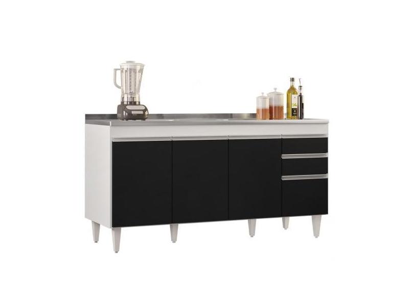 Balcão Gabinete Com Pia Inox 160cm Arkansas Branco/Preto Lumil - Lumi