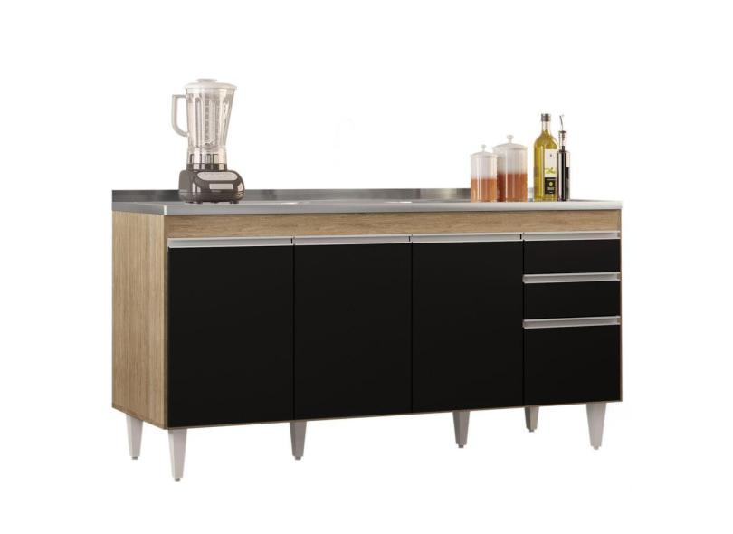 Balcão Gabinete Com Pia Inox 160cm Arkansas Castanho/preto - Lumil