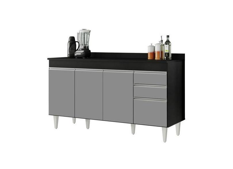 Balcão Gabinete com Tampo 150cm Marrocos Preto/Cinza - Lumil - Lumil M