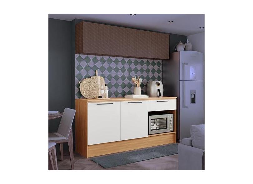 Balcão Gabinete de Cozinha 190 cm com 2 Portas Melissa Branco com freijó