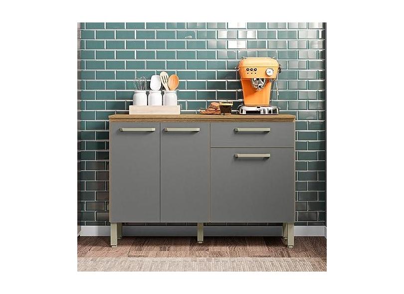 Balcão Gabinete de Cozinha 3 Portas Versalhes Kits Paraná - Freijó/gris
