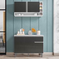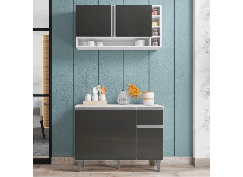 Balcão Gabinete De Cozinha E Armário Aéreo Vanessa Branco Cinza Escuro - Desk Design