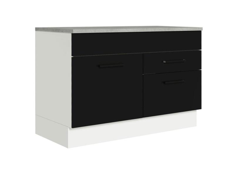 Balcão Gabinete de Pia 120 x 60 cm 1 Porta 2 Gavetas Branco/Preto (Com Tampo) Agata Madesa