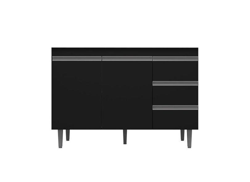Balcão Gabinete De Pia 120cm 2 Portas 3 Gavetas Andréia Preto Total -