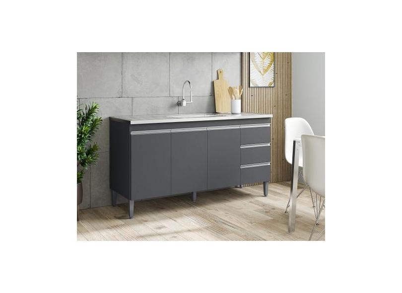 Balcão Gabinete de Pia Andréia 150cm Cinza S/ Tampo - AJL Móveis