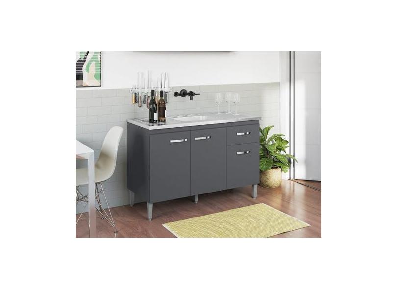 Balcão Gabinete De Pia Gabriela 120cm Cinza S/Tampo - Ajl Móveis