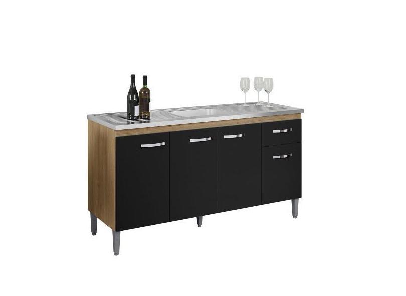 Balcão Gabinete De Pia Gabriela 150cm Amêdoa/Preto S/Tampo - Ajl Móvei