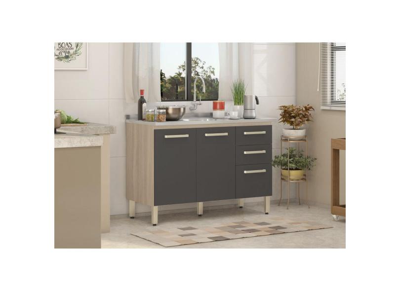 Balcão Gabinete de Pia Miss 120cm Avena/Grafito S/ Tampo