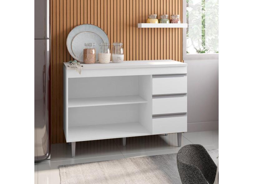 Balcão Gabinete de Pia sem Tampo 100cm 2 Portas 3 Gavetas Andréia Branco - ajl Móveis