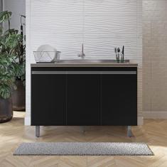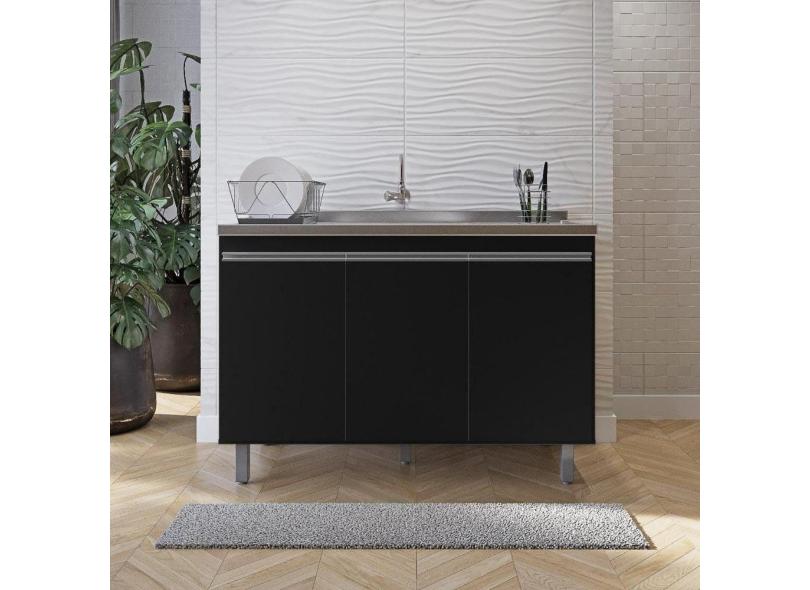Balcão Gabinete De Pia Sem Tampo 120cm 3 Portas Malu - Nathan Móveis Cor Preto