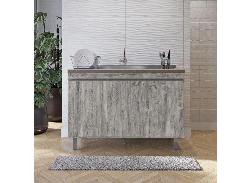 Balcão Gabinete De Pia Sem Tampo 120cm 3 Portas Malu - Nathan Móveis Cor Rustico