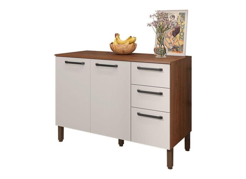 Balcão Gabinete Para Cozinha 2 Portas E 3 Gavetas Tati Castanho-off White - Pallazio