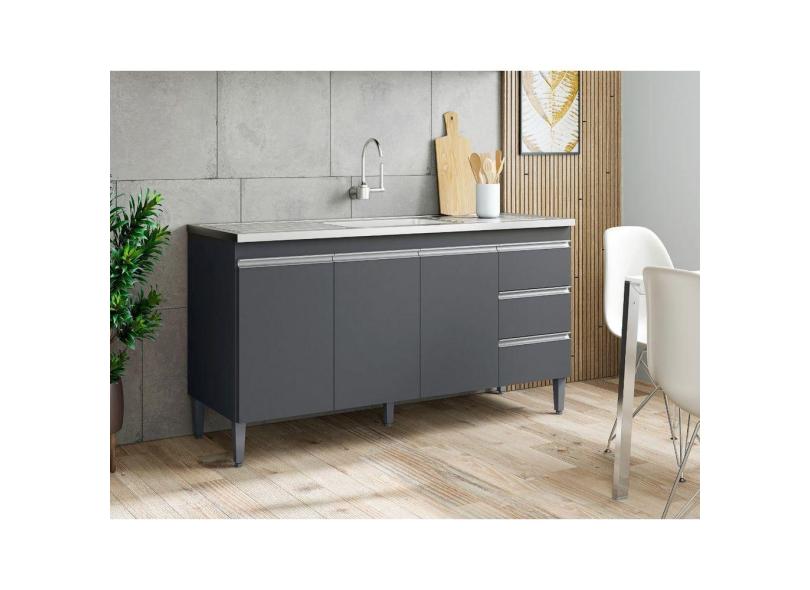 Balcão Gabinete Para Cozinha Andréia 150 Cm Cinza Fosco