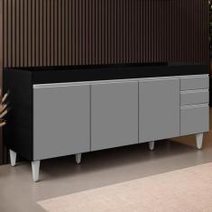 Balcão Gabinete Para Pia 180cm Sem Tampo Dallas Preto/cinza