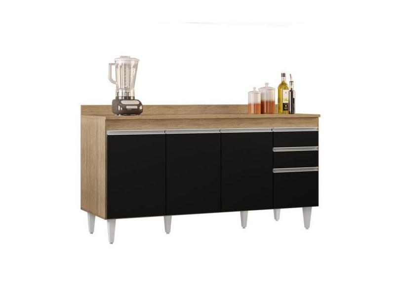 Balcão Gabinete Para Pia Com Tampo 160cm Arkansas Castanho/Preto - Lum