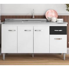 Balcão Gabinete Para Pia Gabriela 150mt 4 portas 1 gaveta Sem Tampo Fl