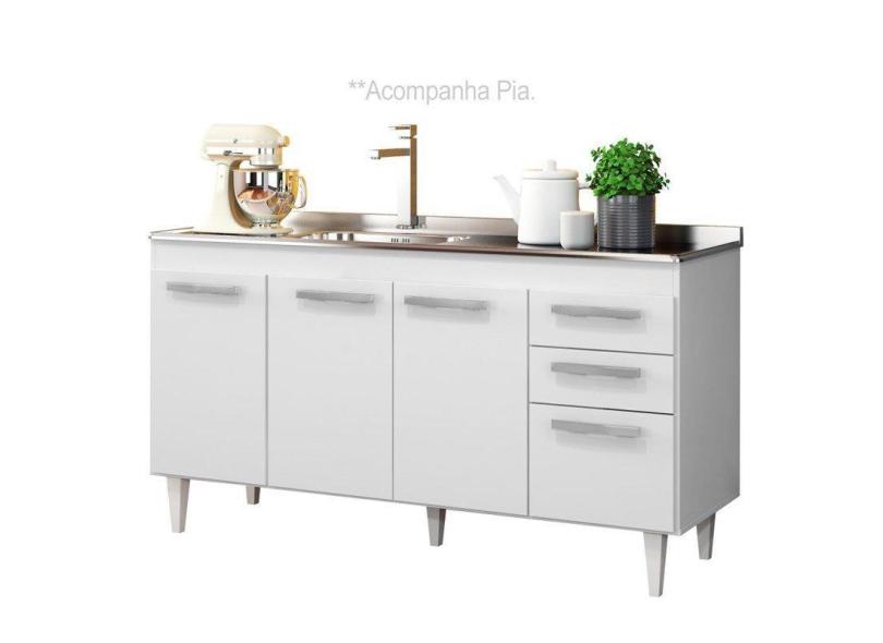 O menor preço encontrado no Brasil para Balcão Gabinete Pia Inox 150cm Lisboa 4 Portas Branco - Lumil Móveis atualmente é R$ 930,66.
