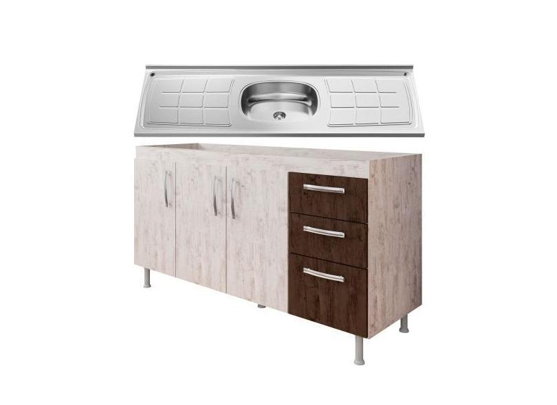 Balcão Gabinete Pia Inox 160cm Nathan 3 Portas Rústico/Chocolate - Nat