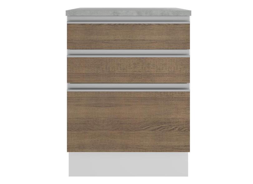 Balcão Glamy 60 cm 3 Gavetas Branco e Rustic Madesa