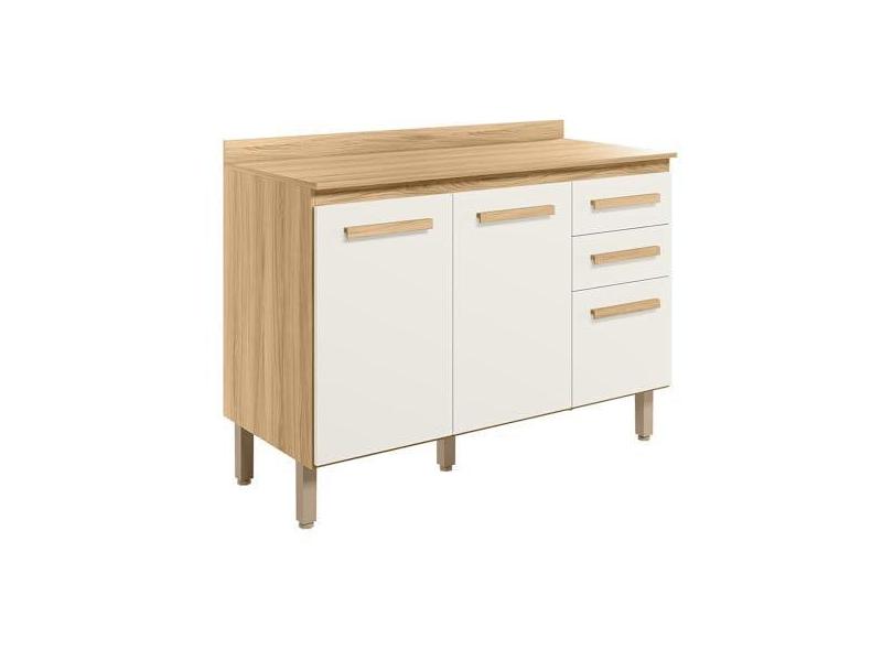 Balcão Intenza com tampo 120 cm com 3 Portas e 2 Gavetas Freijo/off White