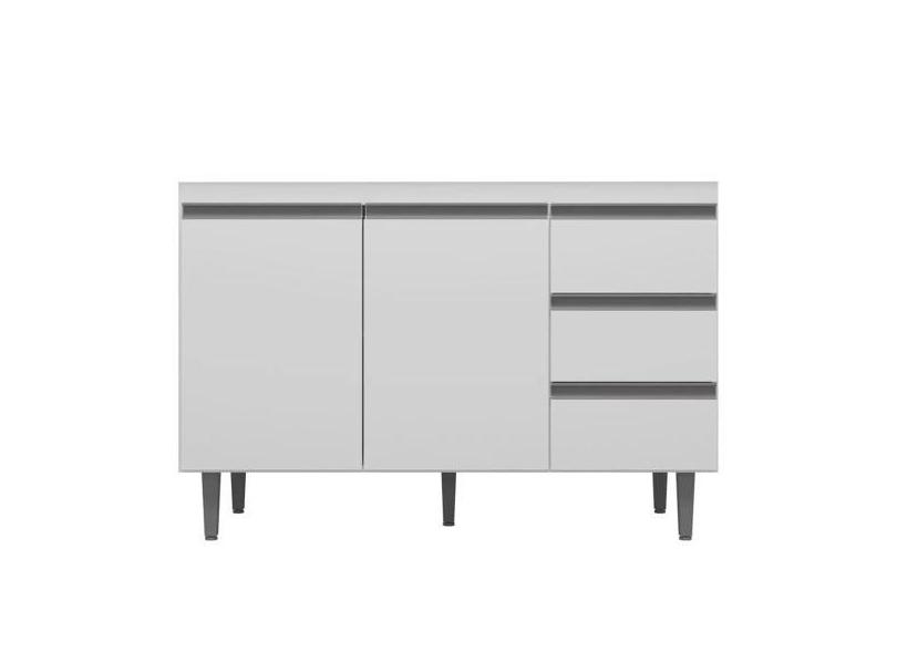 Balcão Kimberly para Cozinha 2 Portas 3 Gavetas C/ Tampo Branco - AJL