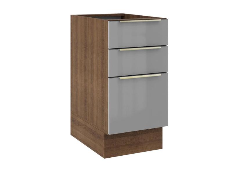 Balcão Madesa Lux 40 cm 3 Gavetas (Sem Tampo) - Rustic/Cinza