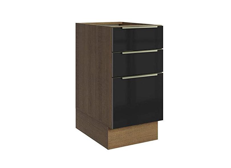 Balcão Madesa Lux 40 cm 3 Gavetas (sem Tampo) - Rustic/preto