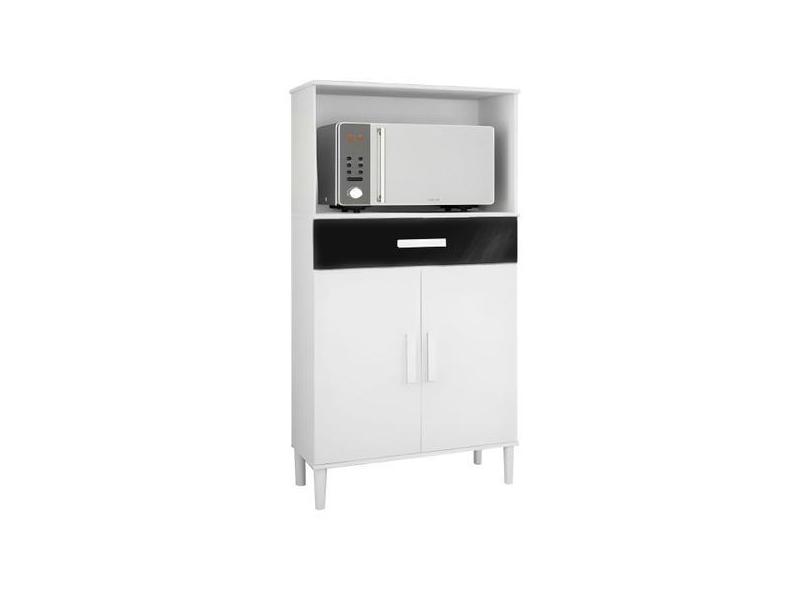 Balcão Microondas Duplo Cozinha MDP 15mm 2 Portas 1 Gaveta - Branco/Pr