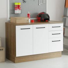 O menor preço encontrado no Brasil para Balcão Multiuso 120cm 2 Portas 3 Gavetas Branco/Rustic atualmente é R$ 967,99.