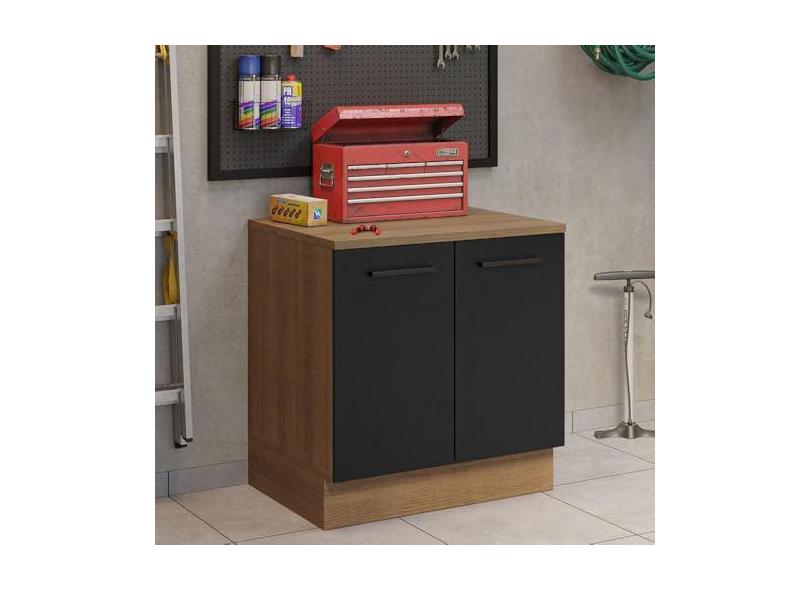 Balcão Multiuso 80cm 2 Portas Rustic/preto Agata Madesa