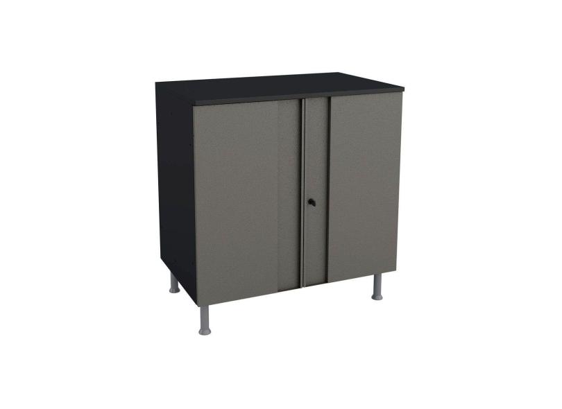 Balcão Multiuso P/Área Serviço Multibox Aço 2 Portas C/Chave C/Tampo 80cm Preto/Cinza - Telasul