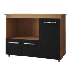 Balcão Multiuso Para Cozinha Liza 3 Portas Cor:savana Preto