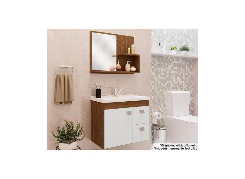 Balcão p/ Banheiro Suspenso Hortência Isa 1Pta e 2Gavs +Armário Espelh