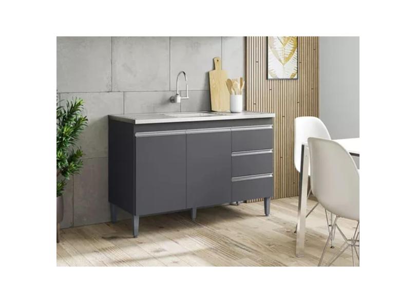 Balcão para Cozinha 120cm Andréia 2 Portas 3 Gavetas sem tampo Cor Cinza - AJL