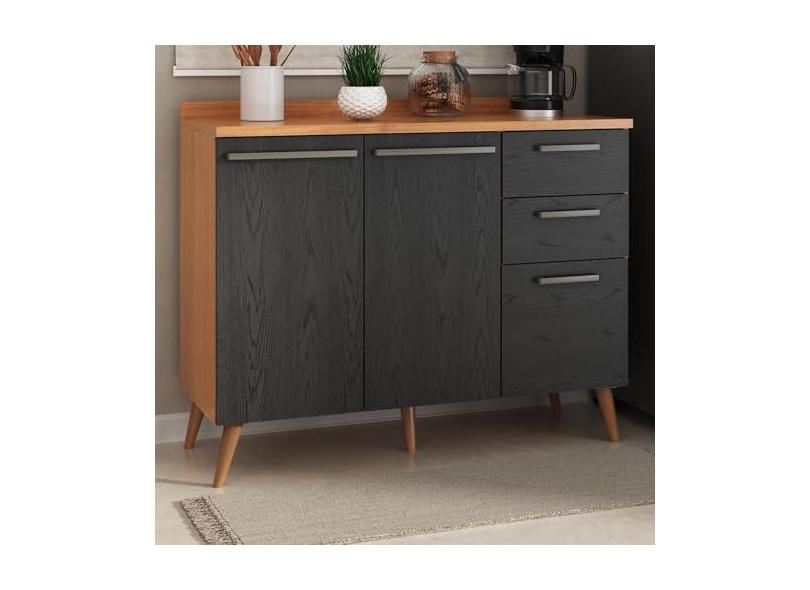 Balcão para Cozinha 2 Portas 3 Gavetas 1 Prateleiras Favorita Cinamomo/Preto