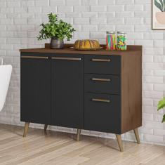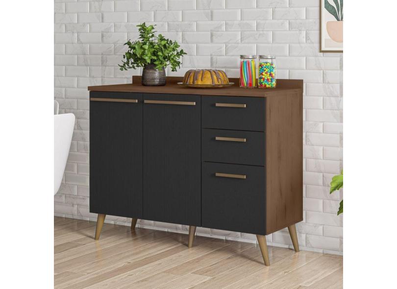 Balcão para Cozinha 2 Portas 3 Gavetas 1 Prateleiras Favorita Marrom/Preto