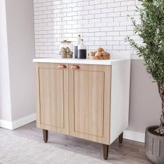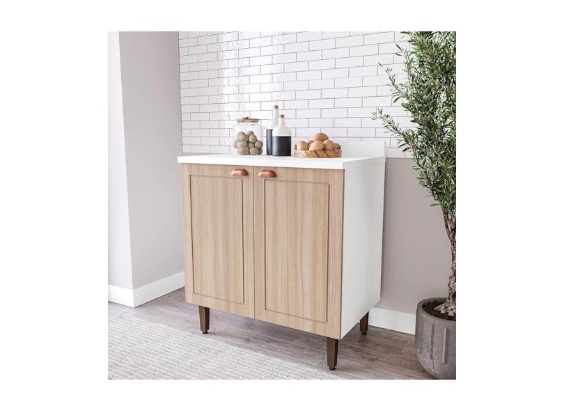 O menor preço encontrado no Brasil para Balcão para Cozinha 2 Portas 80 Cm Pérola Yescasa Branco/Carvalho atualmente é R$ 303,03.