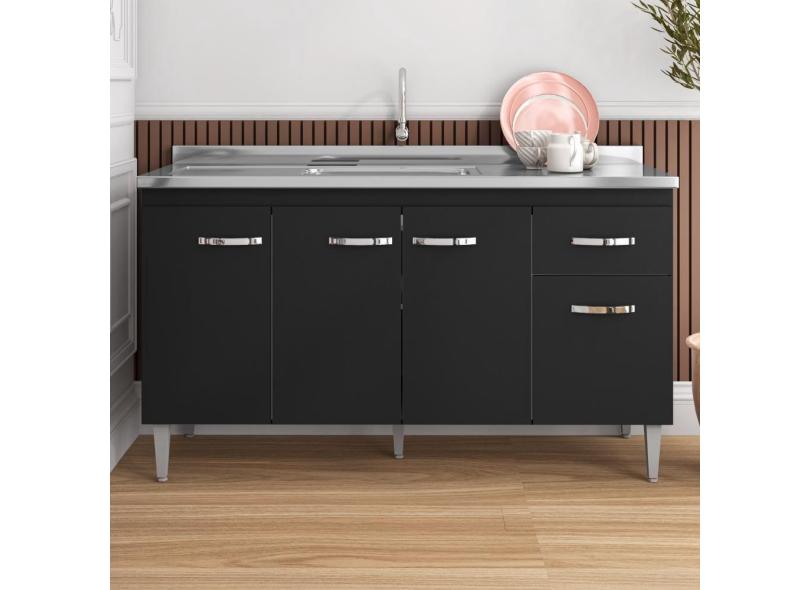 Balcão Para Cozinha 4 Portas 1.5 Town Preto Fosco