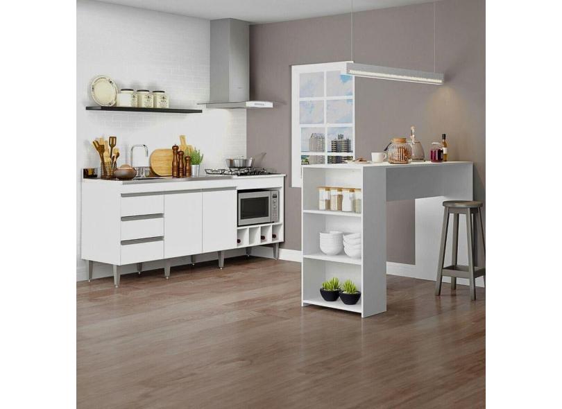Balcão para Cozinha Americana Completa Bancada Ilha Gourmet MDP Branco 2035 MENU