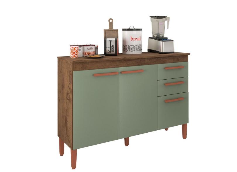 Balcão Para Cozinha Modena Com 2 Portas E 3 Gavetas Freijo Rustico/Green Fosco