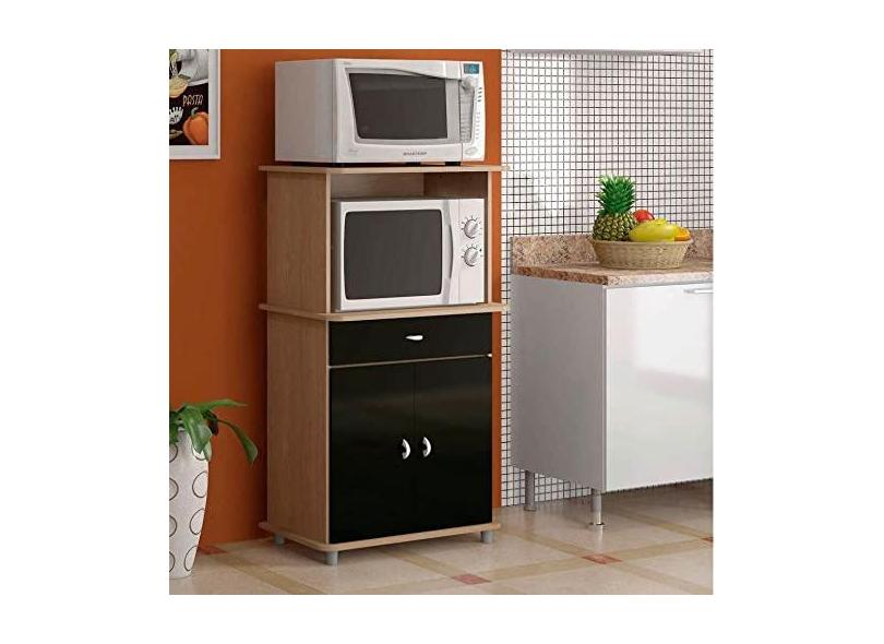 Balcão para Forno Multiuso 2 Portas 1 Gaveta Ditália Móveis Carvalho/preto