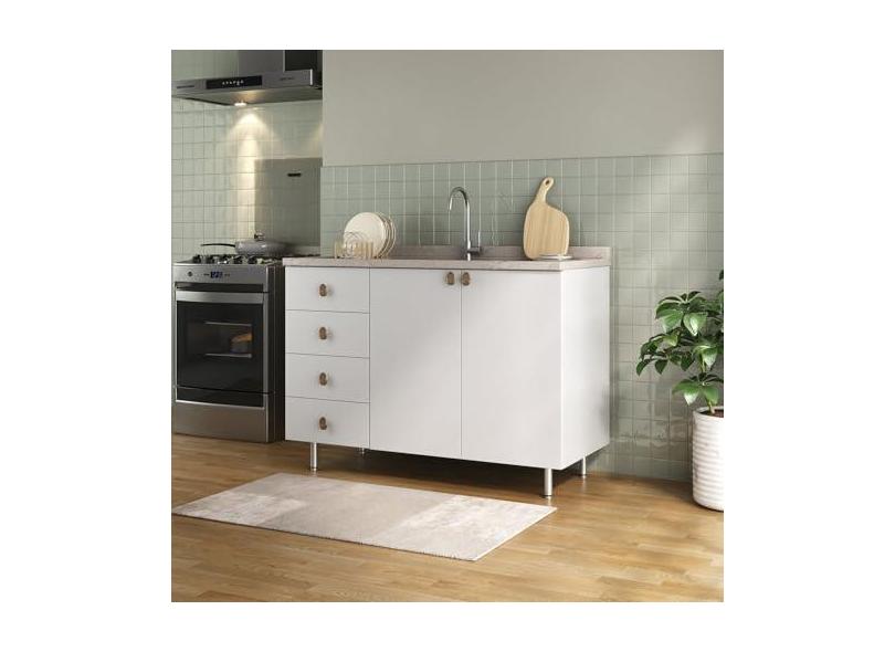 O menor preço encontrado no Brasil para Balcão para Pia 100% Mdf Bp 120cm 2 Portas 4 Gavetas Maranello Branco atualmente é R$ 619,98.