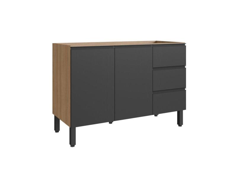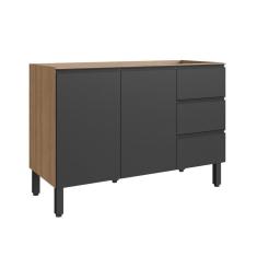 Balcão para Pia 120cm 2 Portas 3 Gavetas Montana/Grafite