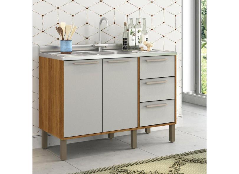Balcão para Pia 120cm 2 Portas 3 Gavetas Montreal Cinamomo/Off White
