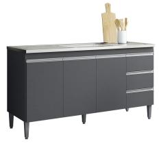 Balcao Para Pia 155 cm 3 Portas Andreia Cinza REAJL